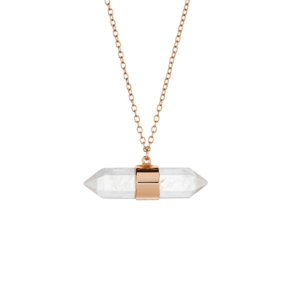 Double Pointed Prism Clear Quartz Necklace - Rose Gold